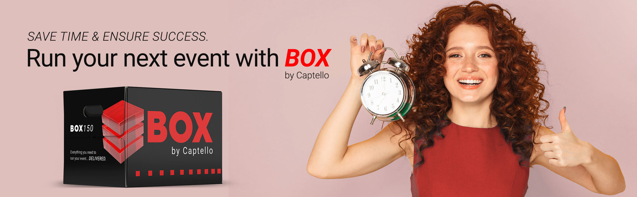 BOX delivers a simple package containing everything you need to run your event, from check-in to follow-up, including Captello's industry leading event lead management platform. Works seamlessly with Captello's Event Management Platform EventGen.